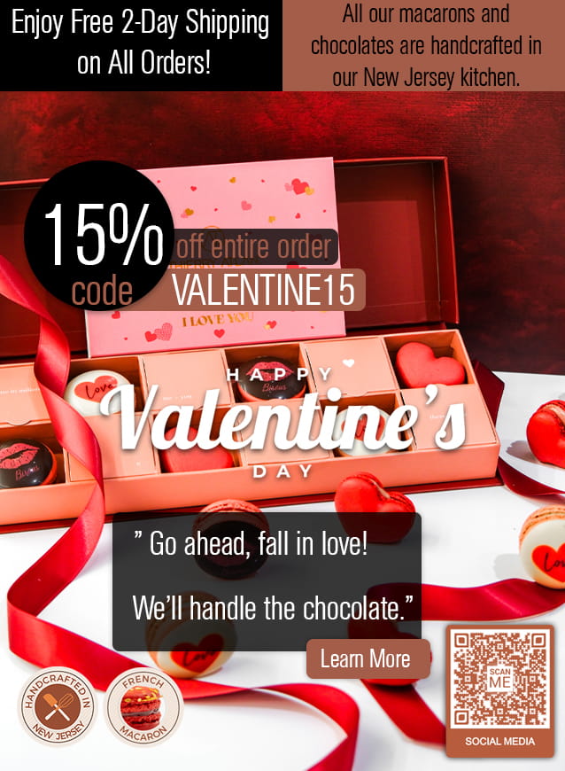 All our macarons and chocolates are handcrafted in our New Jersey kitchen.